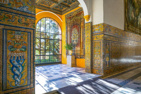 Seville, Spain - December 10, 2014: The Reales Alcazares entrance hall