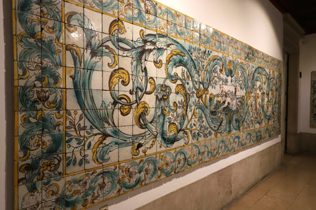 azulejo at the Igreja Sao Vicente de Fora in Alfama in the City of Lisbon in Portugal. Portugal, Lisbon, October, 2021