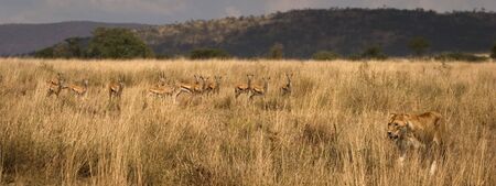 Thomsons gazelle on savanna in National park. Springbok, sand gazelle (Gazella marica), Arabian Peninsula
