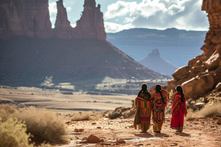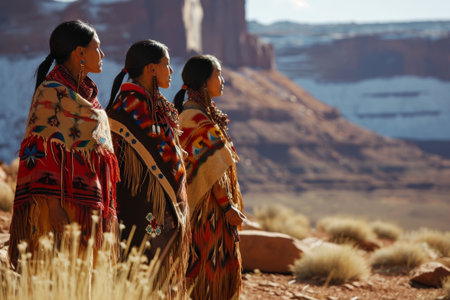Navajo tribe in their traditional clothing, living in desert Ai generated