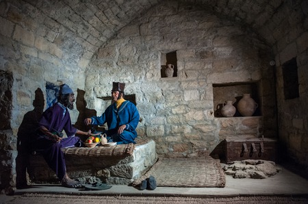 Beautiful nativity scene at Christmas at Tabgha or The Church of the Multiplication of the Loaves and Fishes also called Church of the Loaves and Fishes on the Sea of Galilee in Israel
