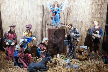 Christmas Nativity Scene. Intricately crafted nativity scene with figurines depicting the birth of Jesus, symbolizing the religious significance of Christmas