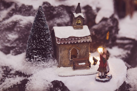 Christmas eve in traditional, cultural style with little figures, and decoration.
