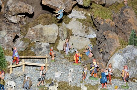 LONGIANO (FC),ITALY - DECEMBER 29, 2017: lights are enlightening artistic Christmas crib in the 27th edition of the Nativity Scenes Exhibition