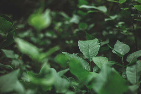 Green leaves background.Green leaves color tone dark in the morning.Tropical Plant in Thailand,environment,good air,fresh.photo concept nature and plant.