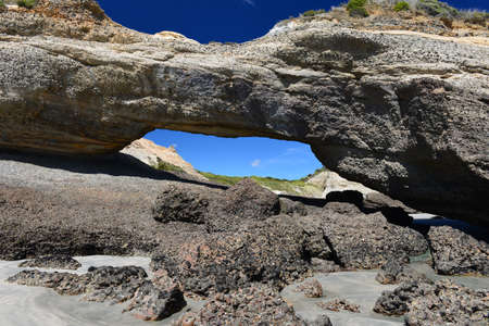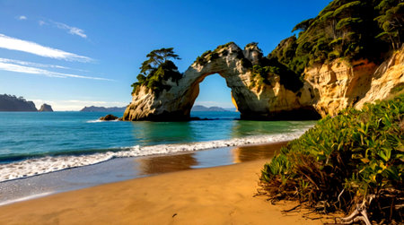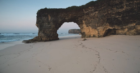 Majestic Rock Arch on a Serene Beach: A Testament to Nature's Artistry