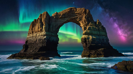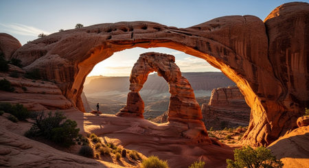 An AI generated illustration of A stunning natural arch is illuminated by the sun