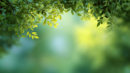 green leaves background in sunny day with bokeh and copy space