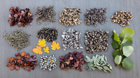 Explore a diverse collection of dried plant materials and seeds, showcasing natural textures and colors. Ideal for educational or artistic projects.