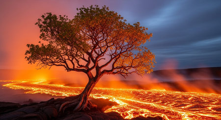 AI Generated. Molten Lava Flowing on Dark Volcanic Rock