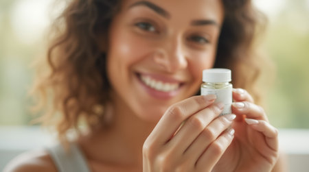 morning intake of vitamins, in the hands of a jar of omega capsules