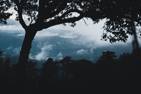 Misty forest,Fog and pine forest in the winter tropical forest,Fog and pine
