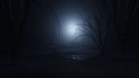 dark and foggy forest swamp 3d rendering illustration background