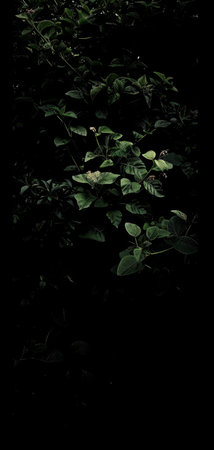 A small, healthy plant with bright green foliage stands out against a deep, dark background, highlighting its natural beauty and vibrant color.