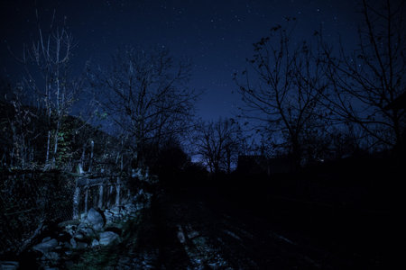 Starry deep blue sky in the mountains