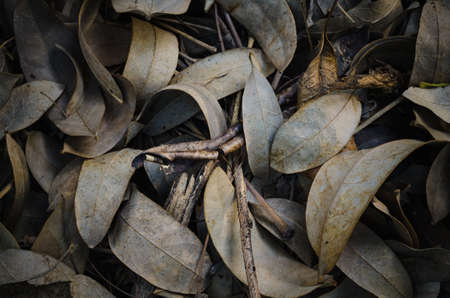 Cracked ground with dry leaves, cracked ground for background. Top view and close-up