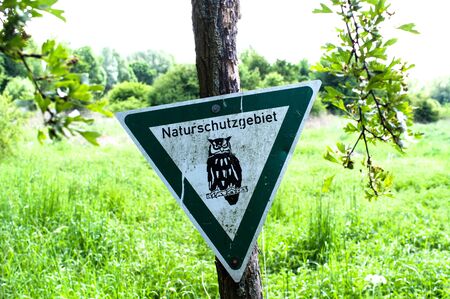 Waste in the nature reserve - warning sign Nature reserve to which a bag with garbage was hung