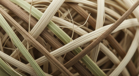 Macro view of tangled dried plant fibers creating a textured organic background Clear details and vibrant colo...