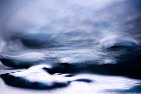 Bizarre waves and swirls macro shot of blue liquid soap and water