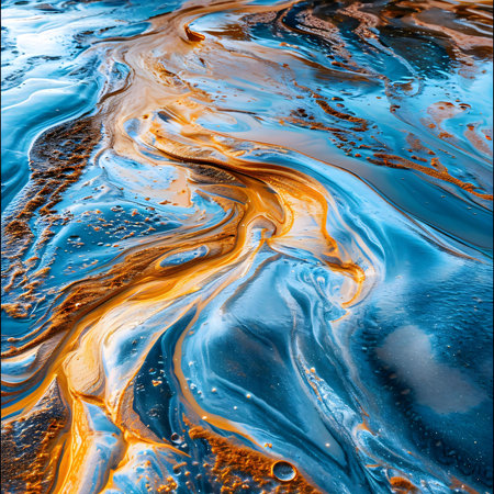 a close up of a blue and yellow liquid