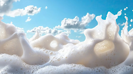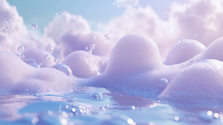 Layer of soapy foam bubbles on water, creating a clean and fresh feel with light emphasizing the soft texture