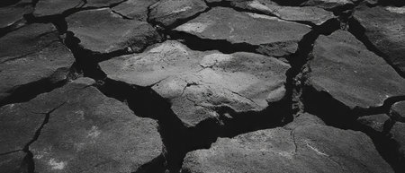 AI Generated. Cracked stone surface with shadows and uneven textures in a dark setting
