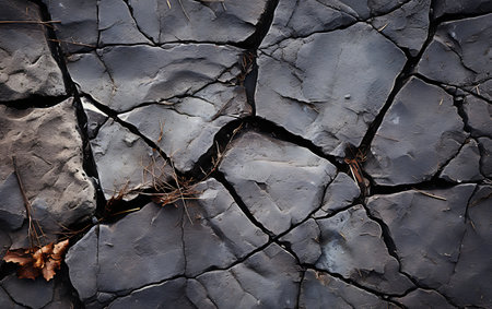 Texture of cracked bedrock showcasing rough gray surfaces and deep fissures