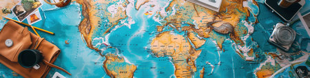 Explore the World Adventure Travel Concept with Maps, Compass, and Travel Essentials