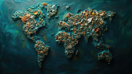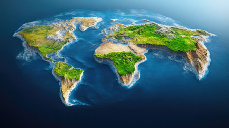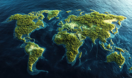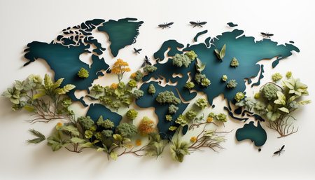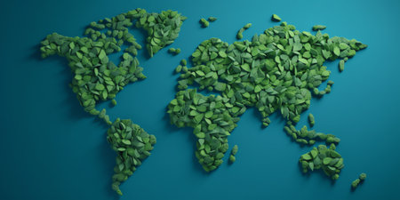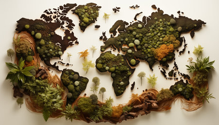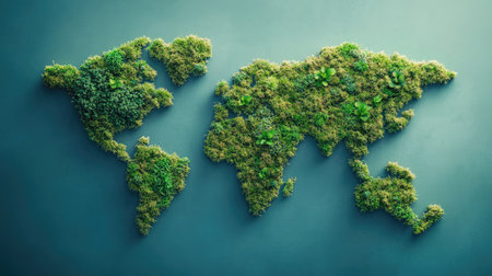 A stunning representation of a world map made entirely from various shades and textures of greenery, symbolizing the beauty and diversity of our planet's ecosystems.