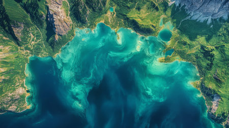 Geospatial analysis of dynamic coastal waters highlighting satellite monitoring and telemetry in real-time. Generative AI