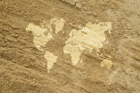 Sand texture surface natural color use for background with world map