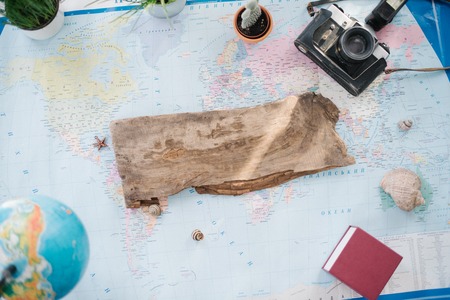 Still life on the political map of the world. The concept of travel.
