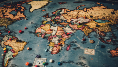 High-quality photo of a map with colorful pins marking must-visit destinations and route planning