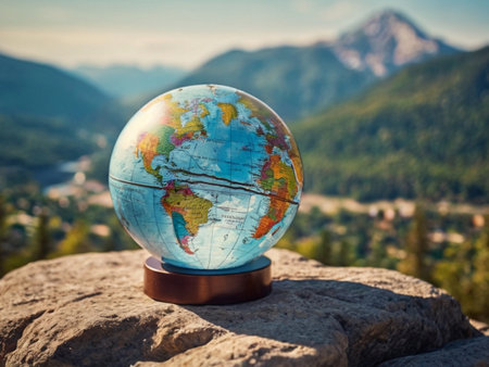 Globe on the background of the mountains. Travel and tourism concept
