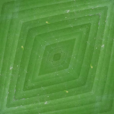 This artwork showcases an abstract geometric design in pale green light, featuring sharp angles and soft gradients that create a sense of depth and fluidity throughout the composition.
