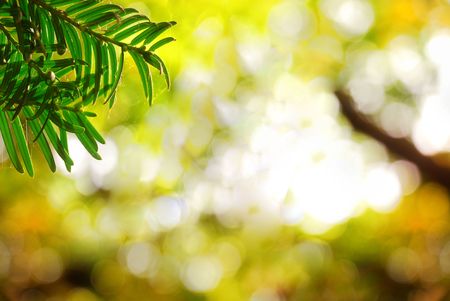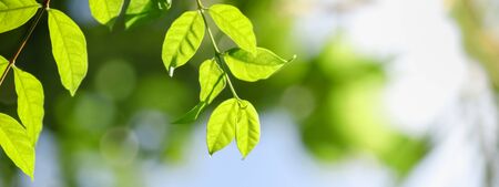 Natural green leaves on bokeh and sun light with copy space. Beautiful green nature background. Safe world and ecology concept.