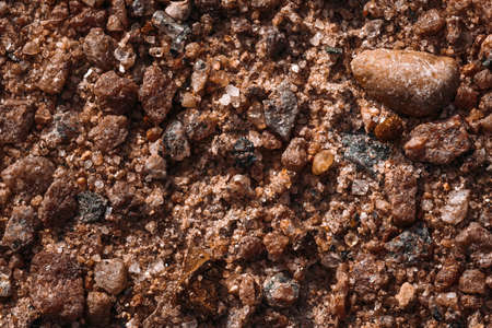 Close-up of soil with pebbles. Selective focus.