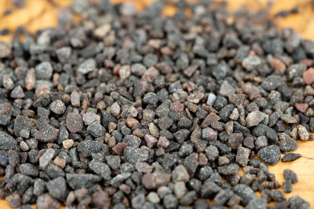 This close-up image features shimmering black granules with varying textures, light reflections, and surfaces, perfect for abstract designs and creative projects.