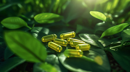 A single green herbal leaf is enclosed within a transparent capsule, representing eco-friendly and natural medicinal approaches. the image symbolizes holistic health, organic treatments, and the use of natural ingredients in modern medicine.