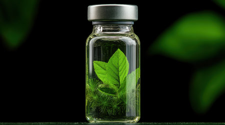 Herbal Plaint and Pipette Over Test Tube, Dropping Sample Chemical into Green Tubes, Biotechnology Research Concept, Generative AI Illustration