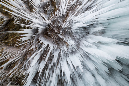 icicles on the ice of Lake Baikal, Siberia, Russia