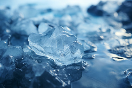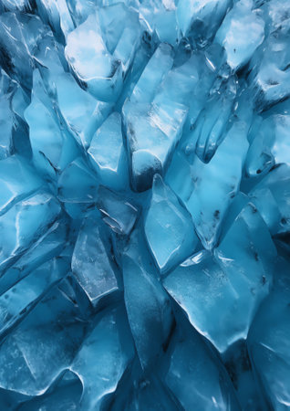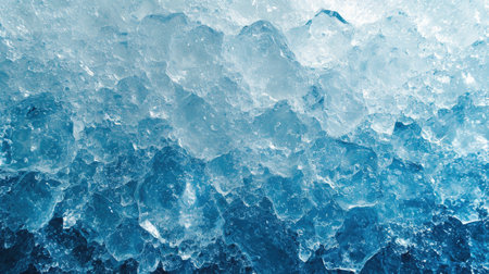 Close-up of ice crystals creating a textured backdrop, featuring shimmering surfaces and cool tones, ideal for winter-themed designs and holiday season graphics with ample copy space