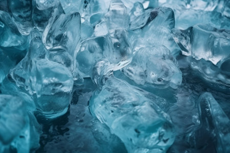 Close-up of clear textured ice blocks stacked background image, ai generated. Purity and sharpness. Icy frozen blue surface photo backdrop wallpaper realistic. Magical wintery concept photorealistic
