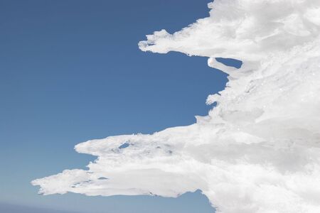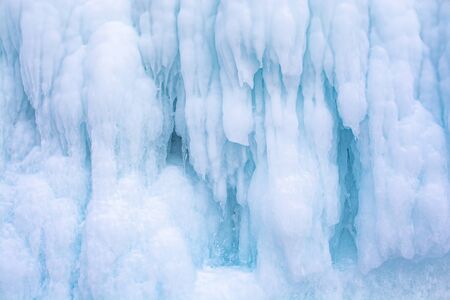 Blue ice stalactite on cliff, winter season in Siberia, Russia, nature background image