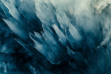 This captivating image features intricate ice crystals sharply jutting out against a dark background, highlighting the beauty of nature's design.