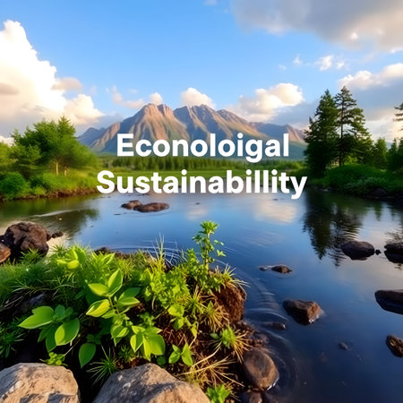 Ecological sustainability concept. Text on the background of the mountain landscape.