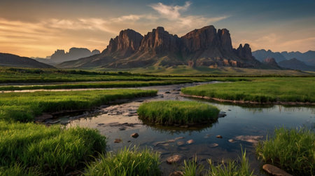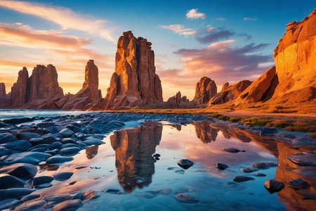 AI Generated. Mesmerizing sunrise landscape of dramatic rock formations