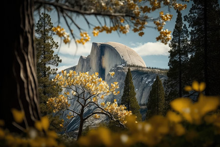 Last light of the day in the Yosemite Valley. Beautiful sunset over the Half Dome in one of the most gorgeous national parks of USA in California