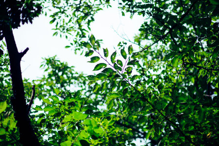 Leaf canopy of deciduous trees on a sunny day