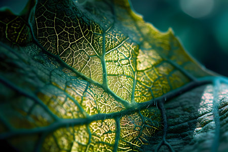 Intricate Leaf Veins Illuminated by Sunlight, Capturing Natural Beauty and Texture